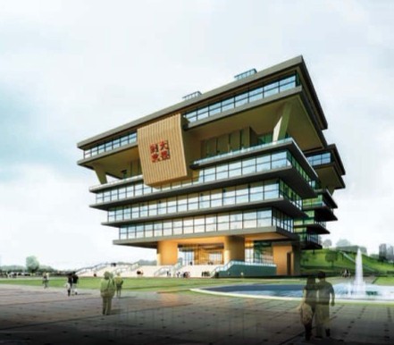 項目位于長沙市寧鄉開發區,總建筑面積22000㎡,地上15層。方案以寧鄉出土的國寶級文物四羊方尊為原型,由下自上逐級放大,整體厚重莊嚴,大量玻璃幕墻的使用,又從里面上弱化了建筑的厚重感。