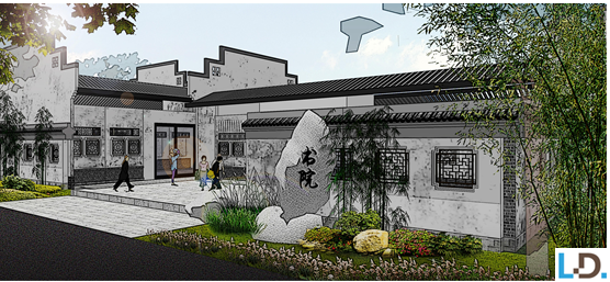 壺中天茶舍:保留原有場地的道路格局和空間形態,對原有建筑進行改造,增設景觀小品,補植植被品種,烘托出茶舍幽雅安靜的氛圍。