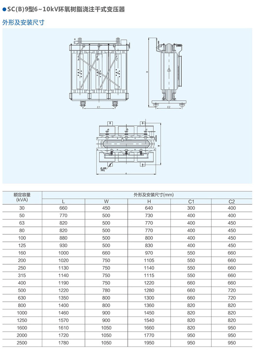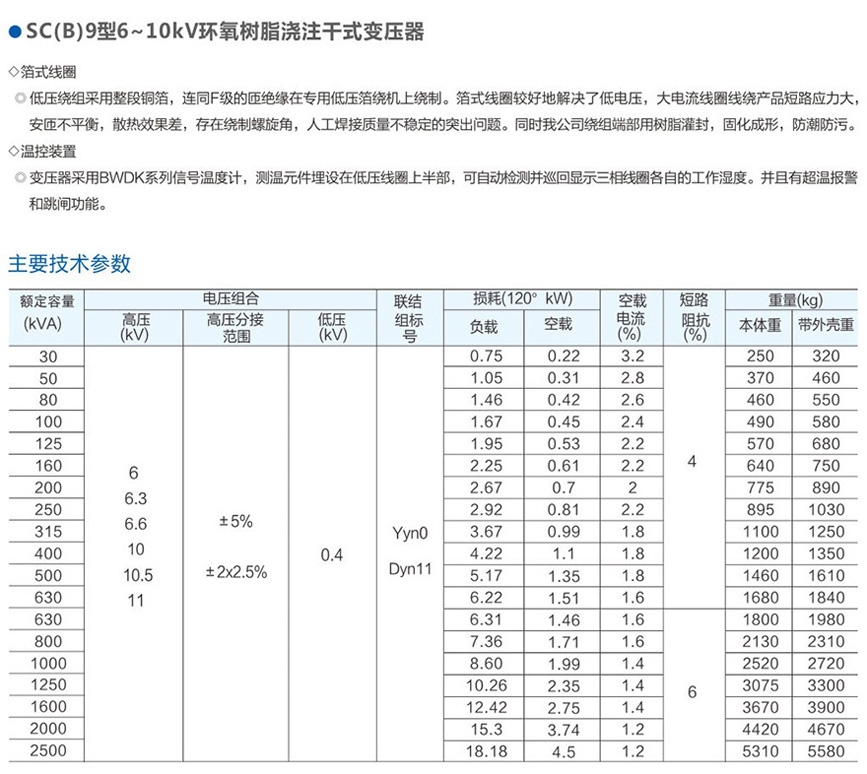 SC(B)9型6~10kV環氧樹脂澆注干式變壓器
