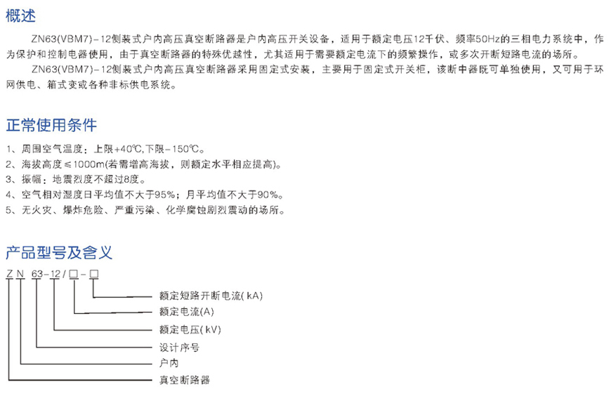 ZN63(VBM7)-12側裝式戶內真空斷路器